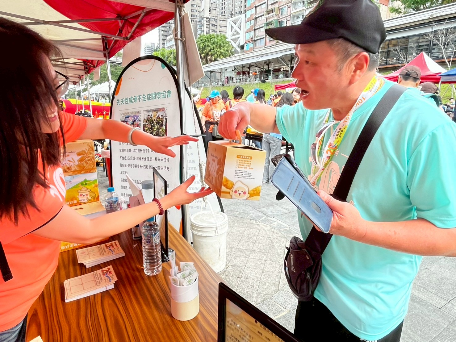 雖然成骨不全症病友平時較不易參加戶外運動,但在這次活動中,每位病友都勇敢踏出家門,親身感受路跑帶來的朝氣與熱鬧氣氛。大家不僅玩得非常開心,也體驗了難得的路跑活動,並帶回豐富的參加禮與完賽禮,臉上洋溢著滿滿的笑容與成就感。
